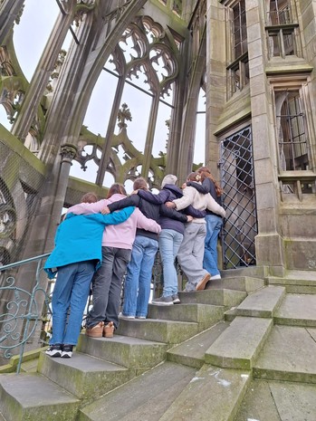 Vor Ort in Katalonien sammelte die Gruppe ihre Eindrücke in einem digitalen Reisetagebuch – stets mit dem Blick auf Frieden und gegenseitiges Verständnis. Stationen waren unter anderem die Küstenstadt Sitges, die Sagrada Família in Barcelona, das Kloster Montserrat sowie ein Besuch bei den Castellers in Vilafranca, den Weltmeistern im Bau von Menschentürmen, deren Prinzip der Kooperation greifbar machte, was das Projektthema inhaltlich fordert.
