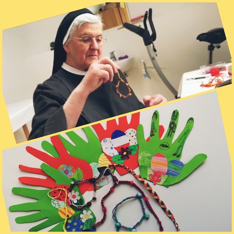 Hintergrund für dieses Geschenk war, dass Schwester Joyce aus Indien berichtete, die Mädchen in Indien würden gerne Armbänder aller Art tragen. Daraus entstand die Idee, mit Hilfe von Schwester Claudia vom Kloster der Franziskanerinnen eine Bastelaktion zu starten. Die ehemalige Schülerin des Franziskus Gymnasiums und FSJlerin im Kloster, Lena Härtkorn, drehte zu diesem Zweck ein Erklärvideo mit Schwester Claudia.
