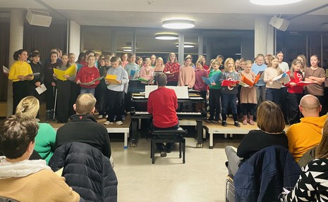 Die ausgewählten Songs waren ein Mix aus klassischen deutschen, aber auch englischen Weihnachtsliedern. So gab es neben „Mary did you know“ oder „That‘s Christmas to me“ auch „Alle Jahre wieder“ und „Macht hoch die Tür“. Zusätzlich wurden Weihnachtsgedichte vorgetragen. Das Publikum war eingeladen mitzusingen und dieser Einladung kamen die Zuhörer*innen zahlreich nach. Die Stimmung war feierlich, fröhlich, adventlich, aber auch besinnlich und jeder kam auf seine Kosten beim Konzert „Sing Joel“. Übrigens haben die Musiker*innen die Woche vorher drei gemeinsame Tage auf der Kapfenburg in Lauchheim verbracht, um gemeinsam zu proben und sich auf den Auftritt vorzubereiten. Man nahm wahr, dass die mitwirkenden Musiker*innen ein eingespieltes Team sind, das gemeinsam mit Chorleiter und Musiklehrer Ralf Löwe einen fantastischen Auftritt hingelegt hat.