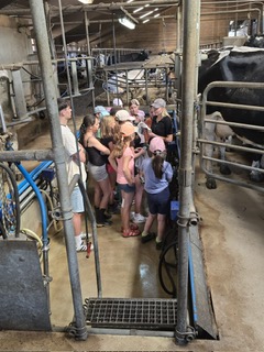Dabei besuchten die Klassen 5a, k und c den Biobauernhof Fauser. Hier wurde den Schüler:innen erklärt, was einen Biobetrieb ausmacht und warum „bio“ gut für Tier und Umwelt ist. Die Fünftklässler:innen gingen der Frage auf die Spur, woher unser Essen wirklich kommt. Die Kinder durften Kühe melken und erkannten, dass das gar nicht so einfach ist und ein Melkroboter doch eine erhebliche Erleichterung bietet. Die Kälbchen wurden eingestreut, Hühner gefüttert und den Schweinen gemütliche Stroh-Betten hergerichtet. Familie Fauser ermöglichte den Fünftklässler:innen sogar, Platz auf dem Pferderücken zu nehmen und eine Runde zu reiten. Fazit: Können wir jede Woche Biologieunterricht außerhalb des Klassenzimmers machen?“