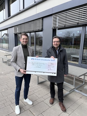 Die VR-Bank Schwäbischer Wald hat dem Franziskus-Gymnasium Mutlangen eine großzügige Spende in Höhe von 920 Euro überreicht. Der Betrag wird für die Anschaffung einer neuen Sitzbank auf dem Pausenhof verwendet.